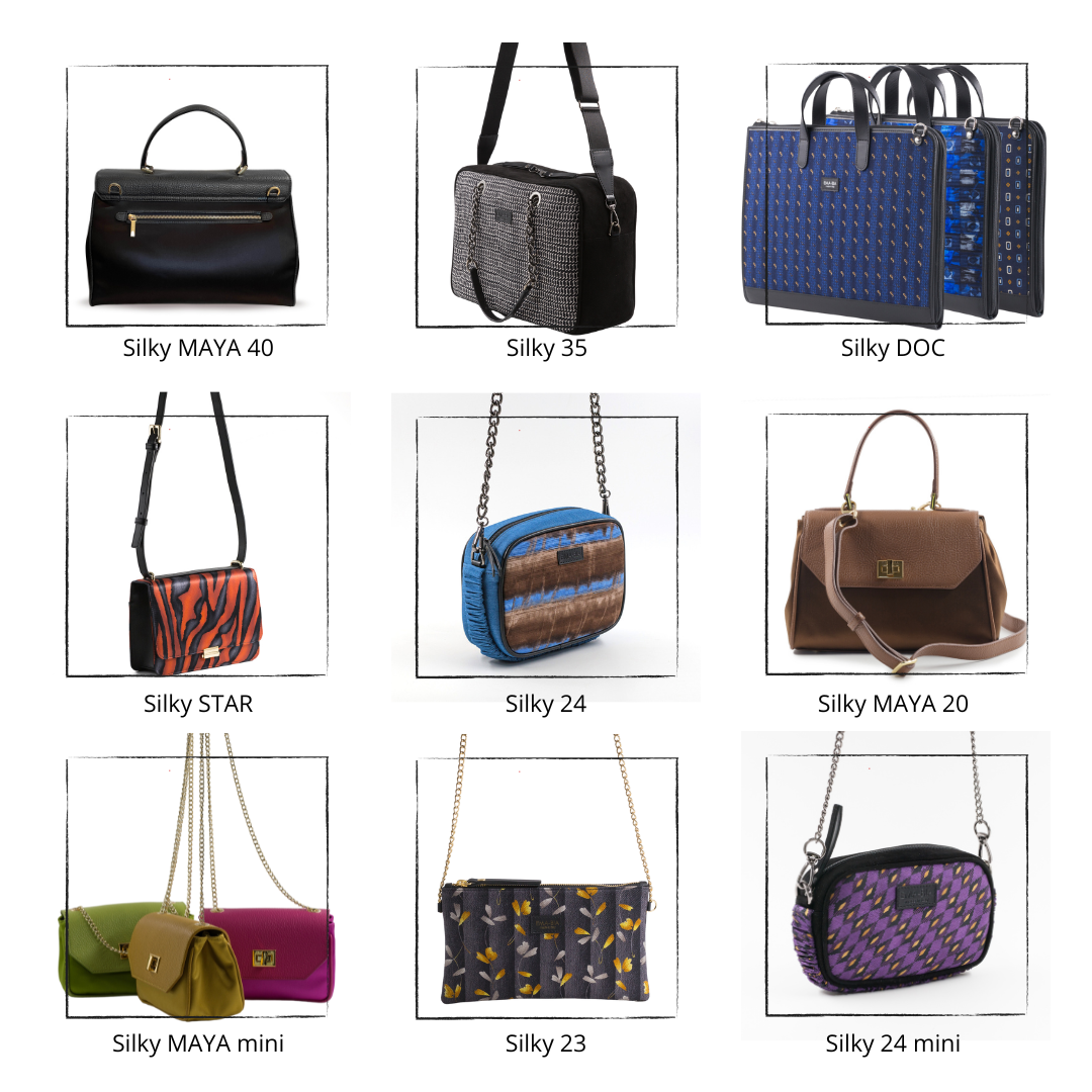 Le borse a tracolla di EMA-BIA reinterpretano l’accessorio quotidiano attraverso l’eleganza e la leggerezza della seta. Realizzate in seta strutturata, sono progettate per mantenere la forma e offrire una buona resistenza, unendo la raffinatezza del tessuto alla solidità necessaria per l’uso quotidiano.