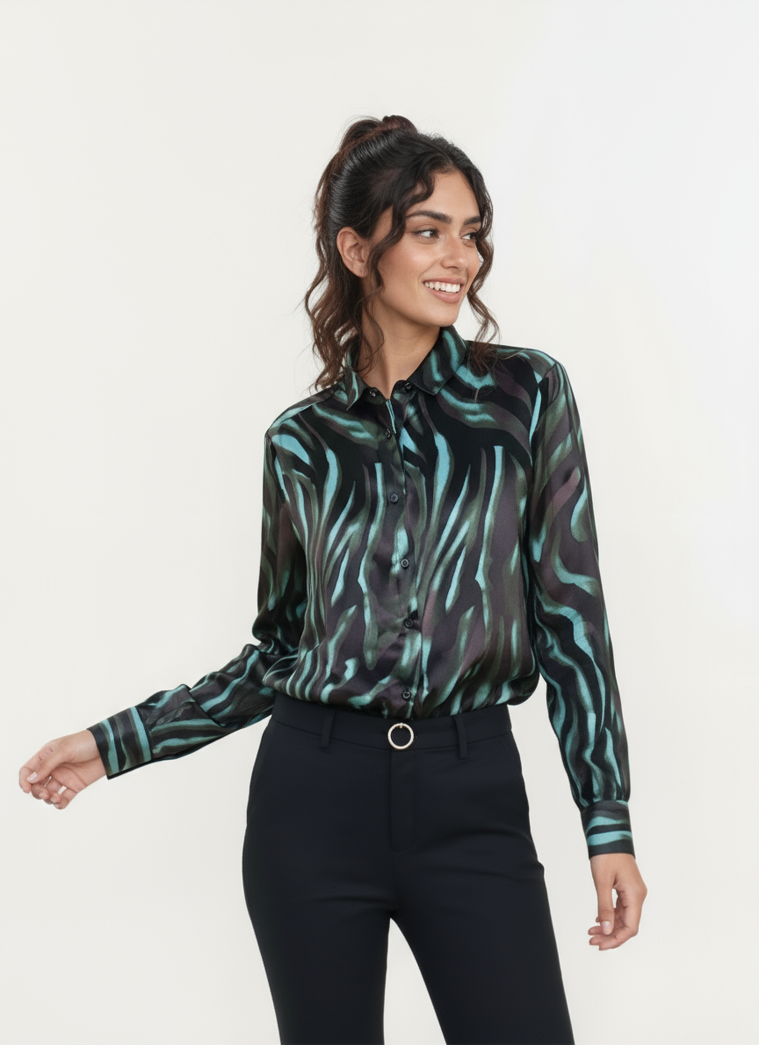 Lo stesso vale per camicie in seta con base chiara o bianco seta — tonalità molto vicine al Cloud Dancer — arricchite da dettagli grafici o geometrici in colori di tendenza. Abbinabili a jeans chiari, pantaloni sartoriali, gonne leggere o trench estivi, questi capi EMA-BIA diventano investimenti strategici per chi desidera costruire un guardaroba duraturo, elegante e identitario.